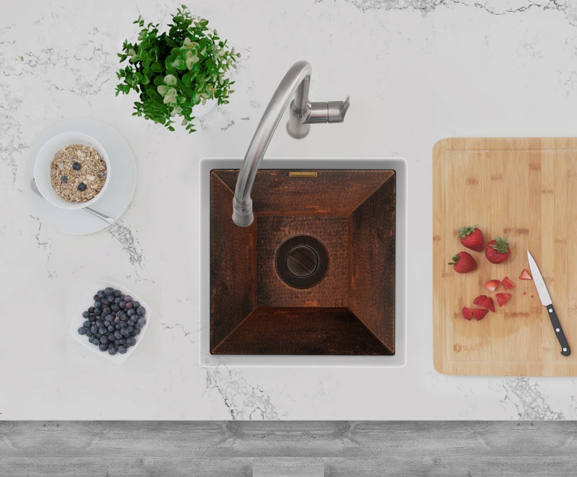 Todos nuestros productos son perfectos para agregar encanto y elegancia a su espacio de cocina. Tarja cuadrada martillada y pestaña plana, para montar totalmente bajo la cubierta. El diseño sencillo va con el diseño discreto de tu bar. Todos nuestros fregaderos de barra están disponibles en once colores (pátina).